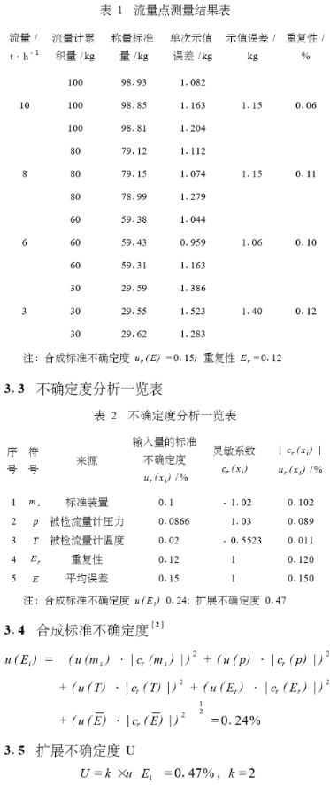 由于所选涡街为流量积算仪加涡街流量传感器的形式,此方式也为当前大多数生产厂家所采用,这里需要将流量传感器与流量积算仪的不确定度共同作为