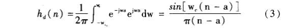 1)根据技术要求确定待求滤波器的单位取样hd(n)。如果给出待求滤波器的频率响应为Hd(ejw),那么单位取样响应用下式求出: