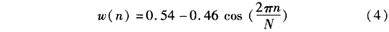 为了从hd(n)得到一个FIR滤波器,必须同时在两边截取hd(n)。而要得到-一个因果的线性相位滤波器,且它h(n)的长.度为M,这种操作叫做“加窗”,则h(n)可以看作是hd(n)与窗函数w(n)的乘积:根据w(n)的不同定义,可以得到各种不同的窗结构,包括矩形窗、三角型窗、汉宁窗、海明窗、布莱克曼窗等,这里采用的是海明窗进行FIR数字滤波器的设计。海明窗这种窗函数是汉宁窗的一种变形,它的形状也相似于一个余弦曲线。可定义为: